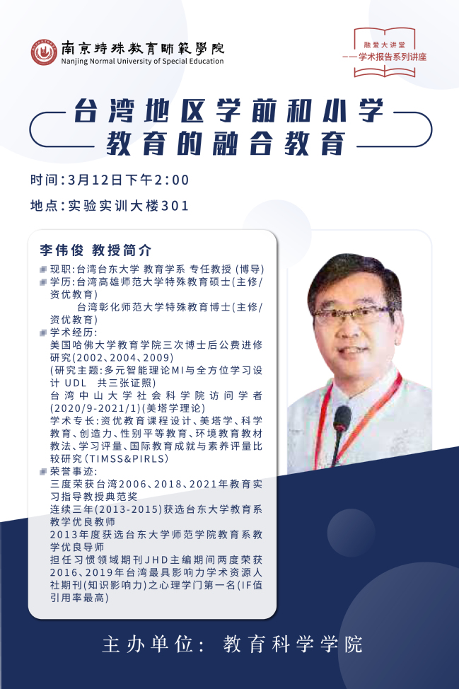 【学术预告】3月12日 beats365 台湾地区学前和小学教育的融合教育