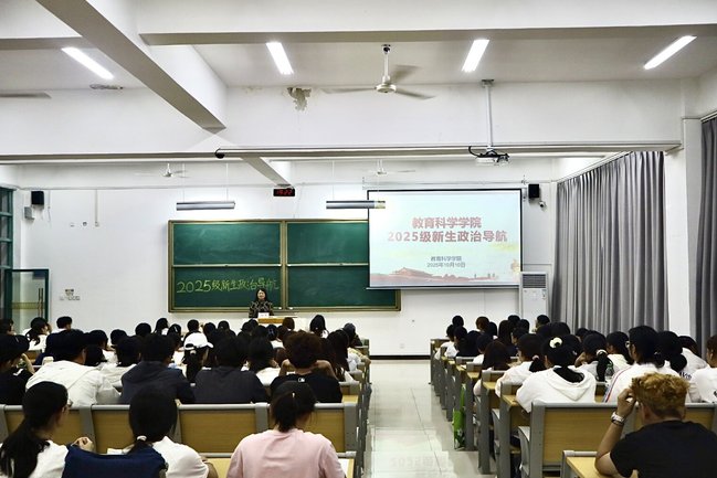 为引导新生坚定理想信念、强化时代使命,beats365于2025年10月11日在江宁校区开展2025级新生政治导航专题教育。本次政治导航由教育科学公司党总支副书记胡芳主讲,2025级新生辅导员以及全体新生参加。